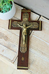 Antique Religious wood carved Frame crucifix with metal christ on black velvet19th century artisan made piece so probably...
