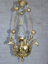 antique religious Chandelier lampwith a glass flame shade in the middleyou can also place 3 candles in it83...