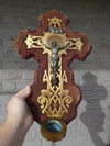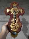 antique french holy water font plaquemetal relief christ wood back plate27 x 17,5 cm 1900s