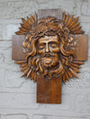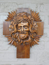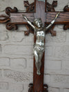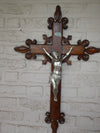 antique french wood carved crucifixwith metal christ corpus ( note a crack on top see last pic )...
