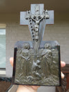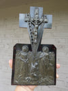belgian 1950s religious plaquewith metal relief calvary scenewood plaque 29 x 16 cm