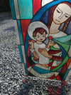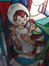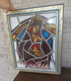 vintage religious stained glass windowframedsigned Thomas '97