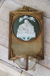 Antique Holy water fontwith a jasperware Green wedgwood porcelain medaillin with a scene with christ in relief on...