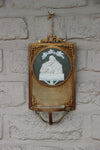gorgeous religious antique holy water font for wall hanging on a wood plaque with a bronze frame with...