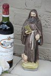 chalkware Statue of Saint anthony with pig 1930s 29 cm height marked at back with 3 letters ...