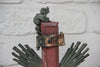 Antique flemish tramp art crucifix made in 40s 88 x50 cm metal christ corpus good condition with minimal...