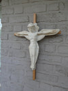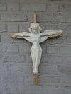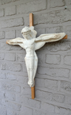 Antique Rare to find antique ceramic jesus as angel with wingsChalkware on wood cross55,5 x 39,5 cm rare...