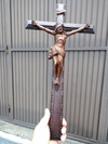 antique french wood carved crucifixwith wood carved corpus also ( nick fingers and nose top )60,5 x 33...