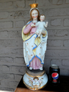 antique Belgian 19thc Bisque porcelain madonna figurine49 cm heightgood condition,just nick top child fingers and crown with angel...