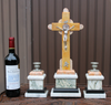 antique rare to find complete marble crucifix setwith side candle holdersmetal corpus still good condition with slight traces...