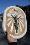 Gorgeous vintage 1950 marble religious wall plaquewith metal christ corpusheavy quality piece 35 x 25 cm good condition...