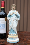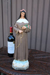 antique ceramic chalk statue of saint rosa lima patron saint of cats rare to find47 cm begin XXth...