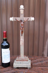 Antique 19th gorgeous french crucifiwmarble cross and a wood carved mid 1800s corpus christ chip foot see pic,...