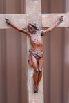 Antique 1940s Wood cut crucifix68 cm height and 43 cm wide so is a pretty decent sized piecegood...