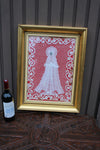 Antique Flanders Religious wall plaquewith a madonna in bruges lacework made by monastery sisters probably 1930/1950 period 60...