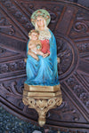 gorgeous 50s german wood carved madonna statuewith console ( is all in 1 piece )48 x 14 cm...