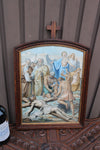 antique French Biblical scene jesus behind glasscoloured lithomarked below , PARIS origin 50,5 x 33,5 cm frame size...
