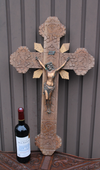 Antique flemish tramp art crucifixmade in 40s88 x50 cm metal christ corpus good condition with slight traces wear...