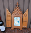 antique french wall hanging triptychwood carved neo gothic designcan be closed also inside a print with madonna and...