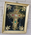 Antique Religious wall plaque relic holderinside a crucifix and coloured stones 5 relics begin XXth centuryvery beautiful piece28,5...