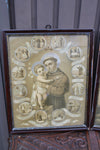 pair antique religious wall frames / plaqueswith lithos behind glass19tjcthe life of saint anthony and crucifx very beautiful...