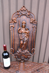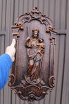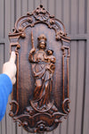 antique wood carved religious wall plaquewith madonna in relief 66 x 32 cm begin XXth centurygood condition
