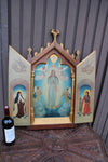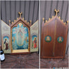 Antique rare to find religious triptychwood frame with gorgoeus paintings , in the middle coronation mary 76 cm...