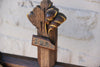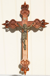 antique wood carved crucifixwith metal corpus christwith fleur de lys at ends points very beautiful piecegood condition with...
