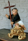 gorgeous antique XVIII century Wood carved young jesus statue at the cross with clothing on Southern europe,probably spanish...