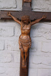 antique french wood carved crucifixfor wall hangingcorpus also wood carved1950sgood condition65,5 x 35,5 cm