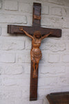 Gorgeous Antique wood crucifixwood carved christ 1930s/1950 periodgorgeous because of its simplicity came out of a furniture sale...