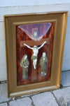 antique XL religious wall frame plaquewith calvary crucifix sene in ceramic chalk behind convex glass19th centuryvery beautiful piece...
