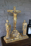 antique ceramic chalk calvary crucifix group sculpturecross can be taken out marked at backrare piece to find50,5 cm...