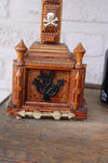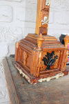 antique XL 110 cm lenght Wall wood carved chapelwith glass windows door opens on frontsidei think there was...