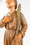 Antique 1800s wood carved original polychromie boy with martyr palm leaf glass eyes77 cm height so a pretty...