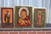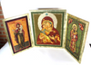 Vintage 1970s religious triptych wall panel with embroidery madonna / saints very nice work which you can hang...