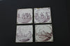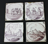 Antique set 4 DELFT earthenware manganese tileswith religious scenes it seems although not sure what meaning is of...