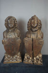 Antique 1800s neo gothic wood carved busts with coat of armsvery nice beautiful pieceswear / imperfections wood normal...