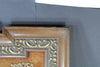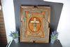LArge FLanders religious panel plaquewood carved frame in the middle medaillon a crucifix on velvet plaque with dutch...