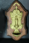 gorgeous 1950s souvenir de Lourdesholy water fontbrass and wood back plaquefor wall hangingvery beautiful28 x 14 cm ...