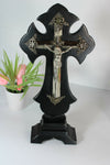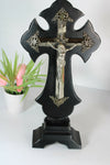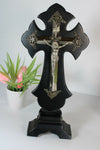 antique black forest wood carved religious chapel with inside a crucifix with mother of pearl nacre corpusvery beautiful...