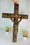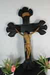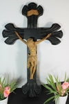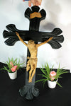 antique xl wood carved crucifix74 x 45 cm 1930/1950 periodgood condition with minimal wear ( some thorns gone...