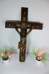 antique french wood carved crucifixmetal corpus37 x 18 cm