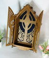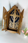 gorgeous vintage 1950 Wood carved wall chapel in the doors are archangel figurines inside you can place a...