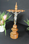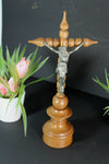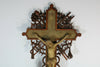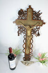 large and rare to find antique french religious holy water fontwith a wood carved crucifix and chalk christus...