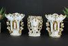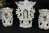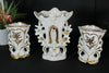 rare to find antique porcelain religious set consisting of 3 vases 2 have form a chapel with inside...