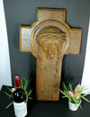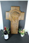 Gorgeous french wood carved wall plaquewith christ 60.5 x 36.5 cm dated 1951 at back and initials artist...