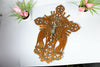 Gorgeous and rare to find 1950 wood cut crucifixwith archangels / sun burst metal christ 47 x 36...