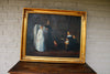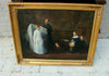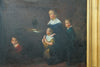 Antique flemish oil canvas painting1st communion preparing by the mother with other kids watching painted with dark tints...