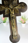 Antique french 19thc Religious wall music box crucifixin a frame when you turn key at bottom it starts...